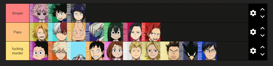 i got dared to do a smash or pass with fucking mha characters, i couldnt find one after the final war arc (so they'd be adults) so just- this is purely for that, they're just the wrong images