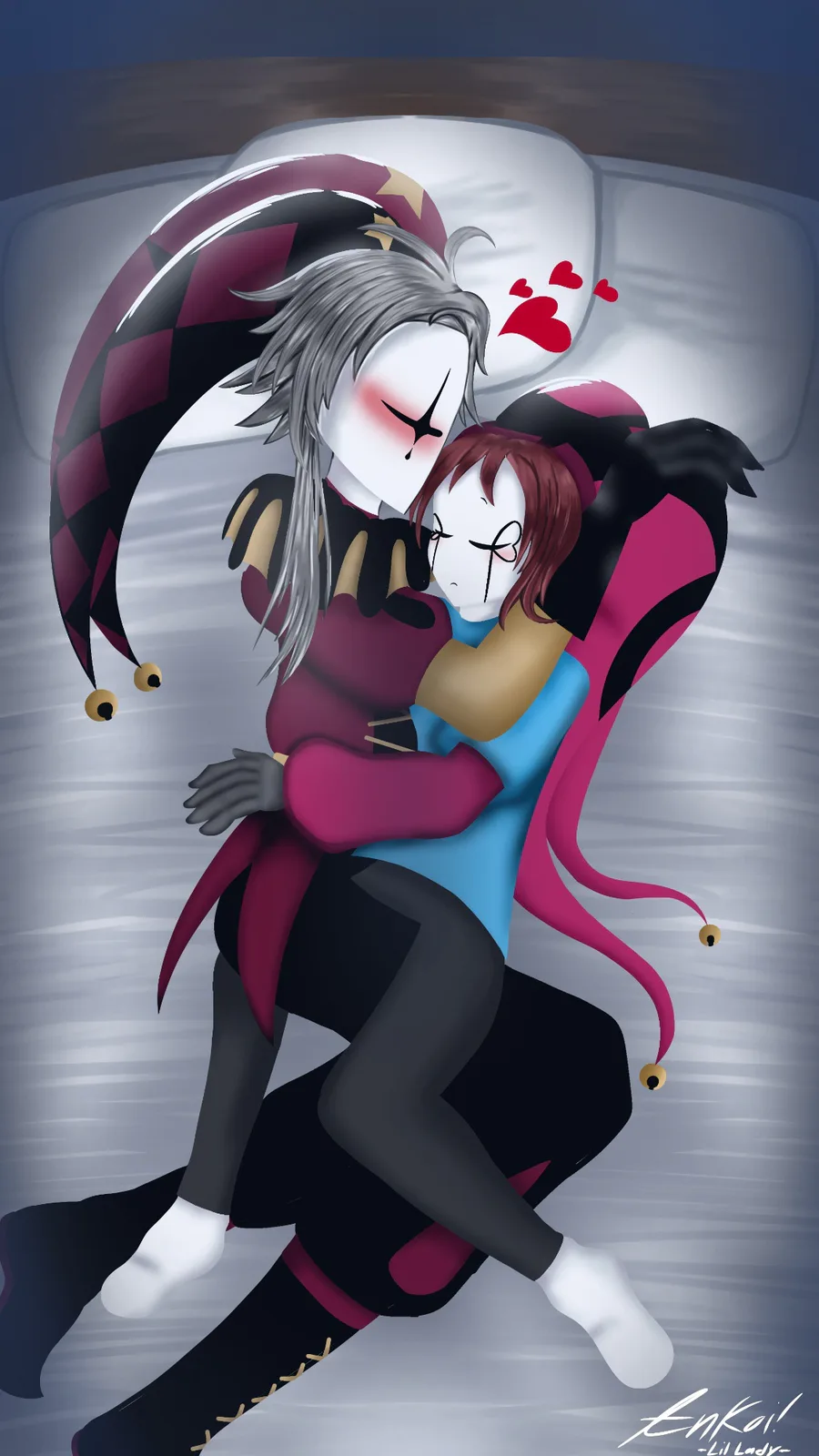 The first one is a fanart chibi gift to my dad Charles! The second is my self ship art with Pierrot from The Freak Circus!