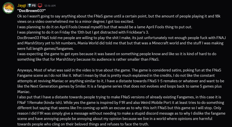 My formal message about DocBrown03 FNaS