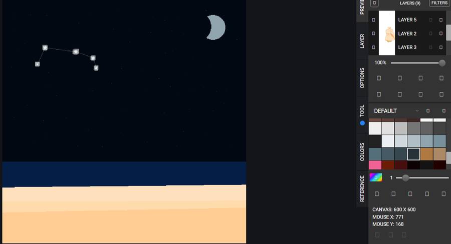Her body is in front of the constellation ;_;