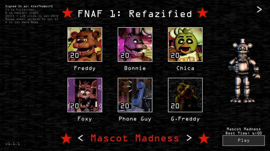 Welcome to the UNBEATEN FNaF game of Post shift custom night, in this video I beat 22/20 mode Which is the highest amount that anyone has done Now I will try and see how far this game can go before it becomes impossible or possible