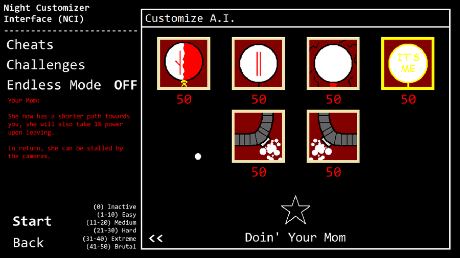The only reason I redesigned the custom night menu was so that 8 characters could fit.