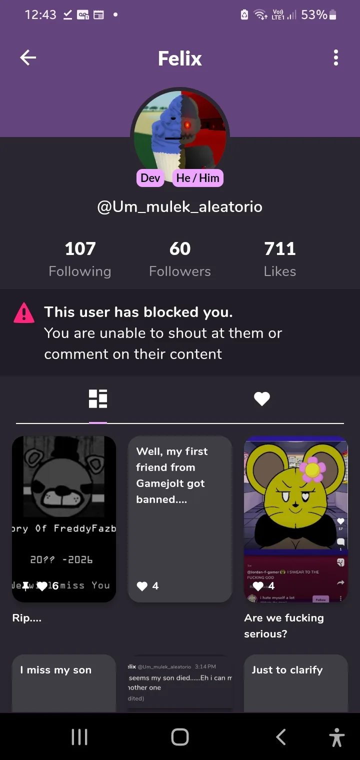 Bro blocked me without see the comment of me AGREEING with him about how fnia is trash nowadays, and another comment of wanting to break up with my bf cuz this stupid rat is his