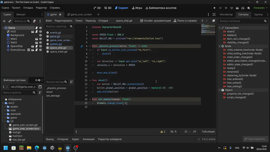 Сделал что-то на подобии Space Invaders по гайду на ютубе: https://youtu.be/8Jgm0qrl9tE?si=wJDXfFIYdKoePEJI.