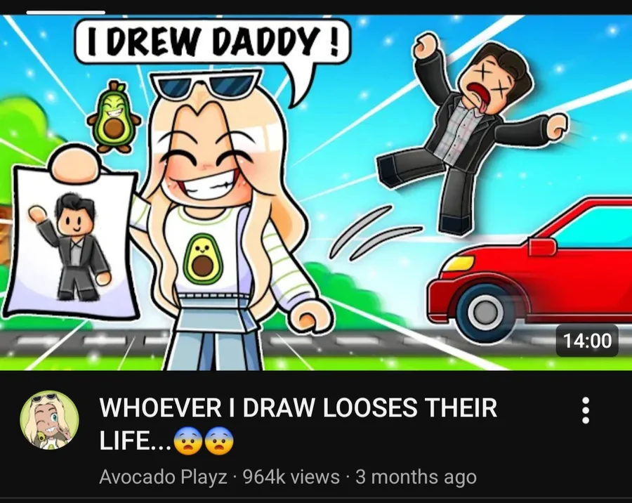 If you’re still clicking on videos titled "WHOEVER I DRAW LOSES THEIR LIFE..." then your brain is officially cooked. Look at this thumbnail. "I DREW DADDY!" while a Roblox character gets flattened by a car? Are you fucking kidding me?