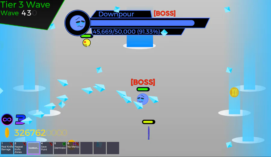 About yesterday's post, the new attacks are so fun to dodge!!!!! Hopefully I can pull off the same fun with Uproar. I'm thinking of giving him more homing attacks since Downpour has a bunch of wide-spread ones.