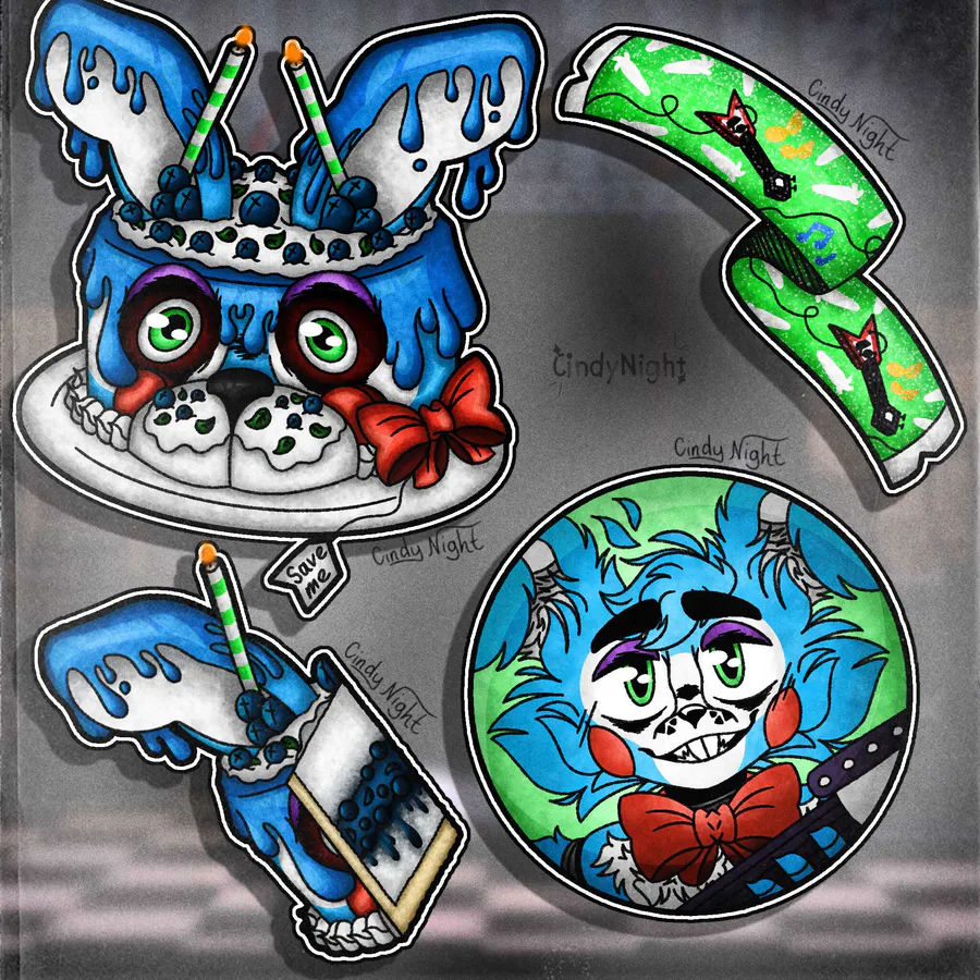 Good day! Third teaser for fnaf univ/fanv with cake designs for 'Toy Bonnie' with two types! Also shown are the filling inside the cake and the wrapper design. 7/???