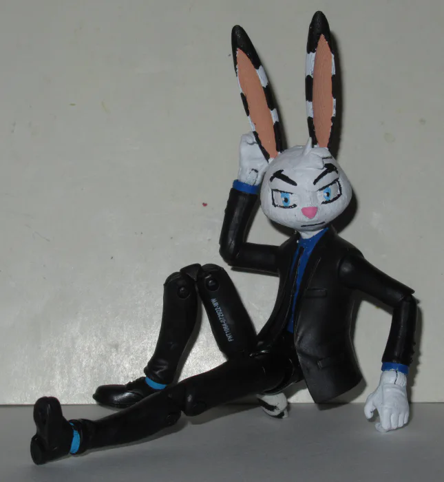 This is a character named Jack Rabbit that I was commissioned to make for Frecher. I don't know anything about him other than he's a spy, but I don't know if he's an OC or from something.