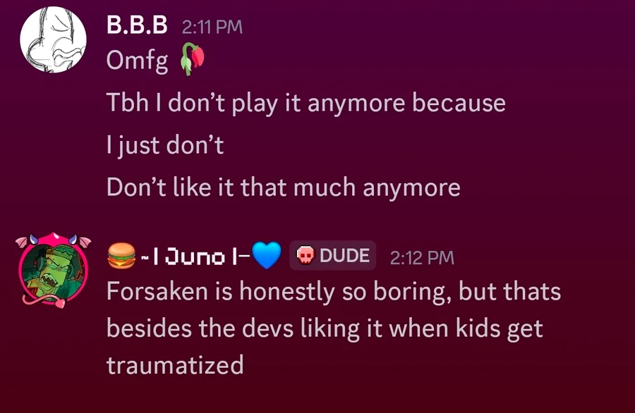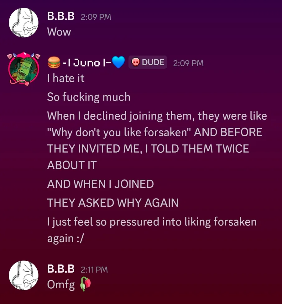 I feel so pressured into liking and playing Forsaken again. Do I just man up and join them??? :/