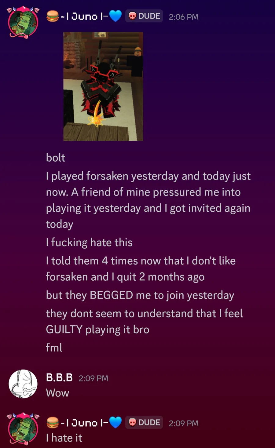Some of my friends keep inviting me to Forsaken. NOT B.B.B, HE'S A GOOD FRIEND.