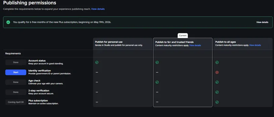 Roblox updated requirements to publish games for all ages. Now you need to pay 5 dollars every month for subscription. I'm leaving Roblxo Studio. Maybe forever. It was good till it lasted.