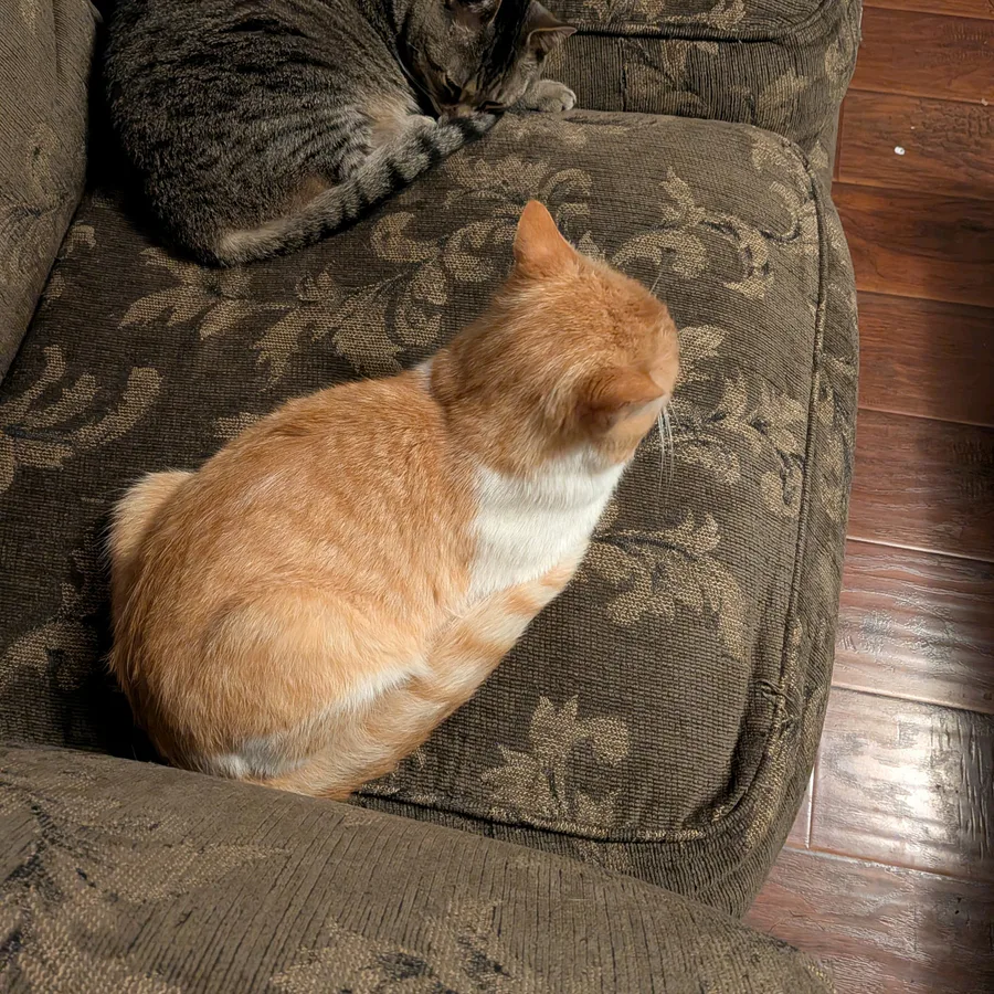 He is on the couch next to me right now. He loves that little stick I brought inside for him lol.