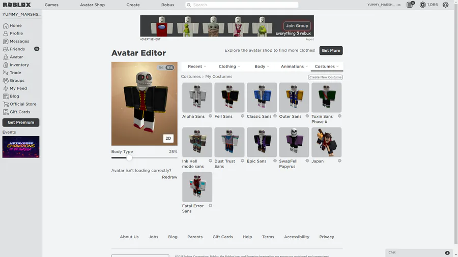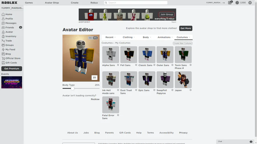 I just finished making these really cool avatars in roblox, SwapFell Papyrus phase 2 and Fatal error sans!
