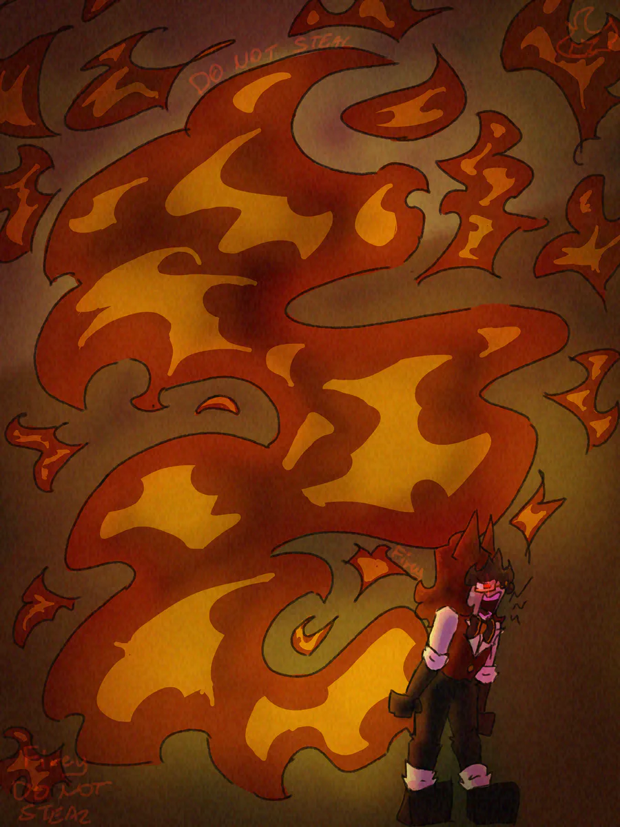 Wanna go back to posting so here's my latest drawing, that's my OC Firey, in short she's a fire lady, she's part of the element group: Evelyn, Theo and Denwill (will make more detailed post about em all.)