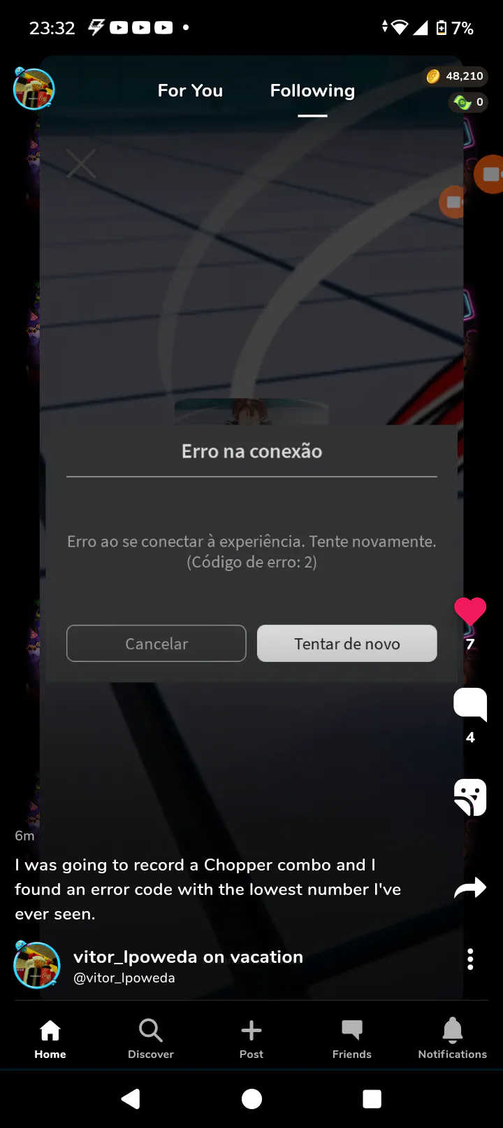 I was going to record a Chopper combo and I found an error code with the lowest number I've ever seen.