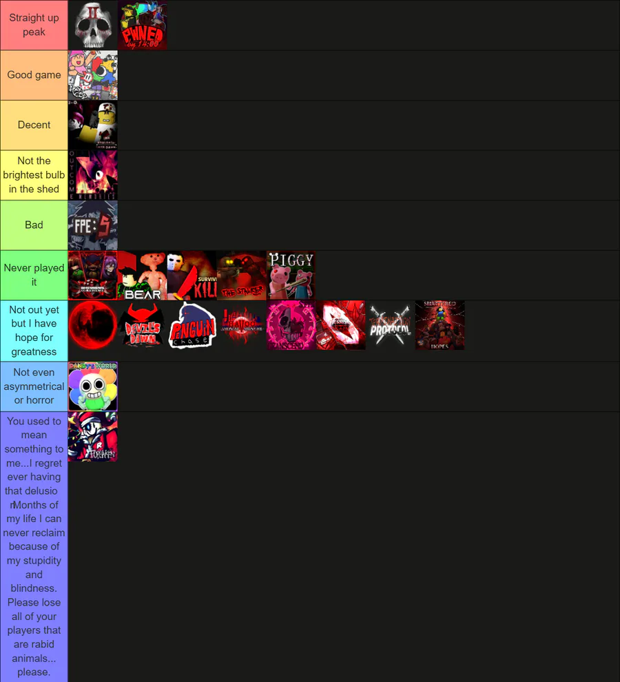 My new and very much improved tierlist on Roblox asymmetrical horror games