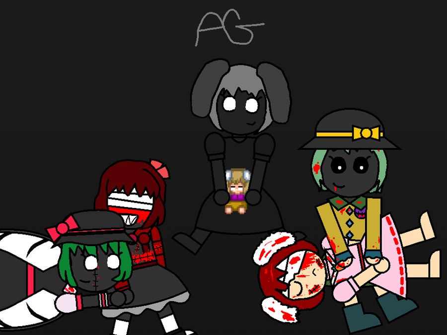 Cursed Flandre showing off her collection of people she killed before Christmas.