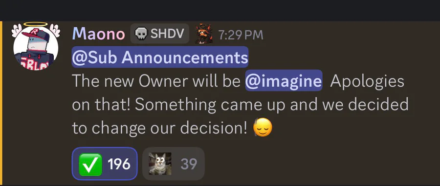 Manono has stepped down from ownership of Shattered Hopes and has given ownership to Mei Mei