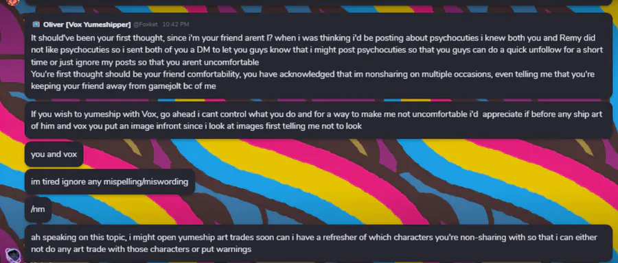 im sorry but the fact he thought if he used "im your friend arent i?" as a excuse, no im not gonna think of whatever your comfortable with if its a ship?? its not cannon so stop being petty on it