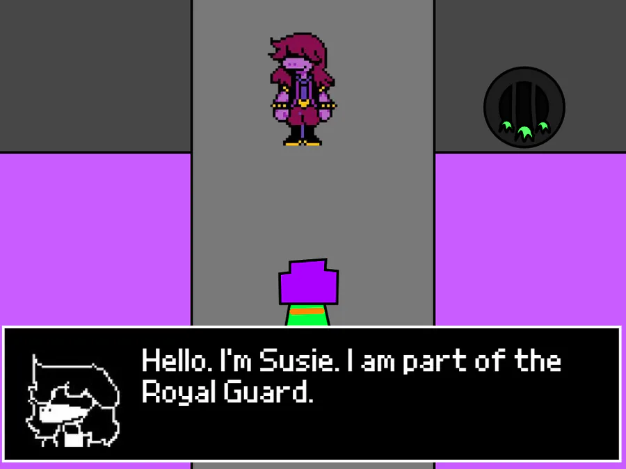 The sprite is a reference to Kris' sprite, who's eyes are hidden.