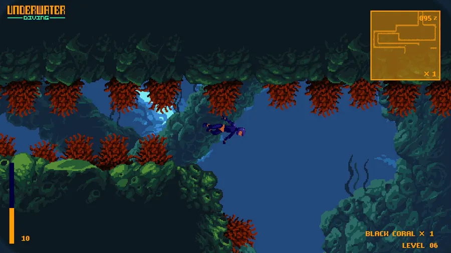 You are an underwater diver surrounded by aggressive fish and minefields
