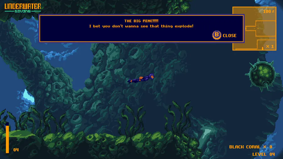 You are an underwater diver surrounded by aggressive fish and minefields