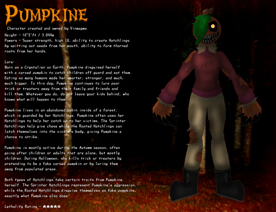 Sorry for no updates on Act II in a while. In the meantime I guess I'll show you this cool Pumpkin character I made for a future project.