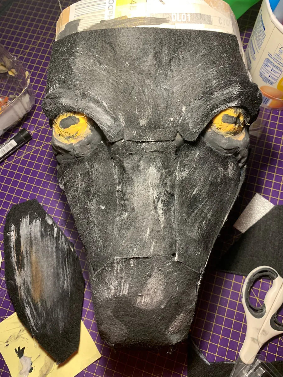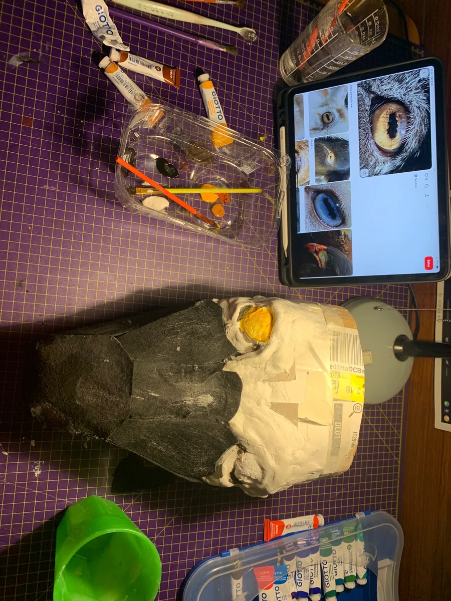 Made a CHICK from FNaF 1 remake cartboard head cause i really like the animatronicc.