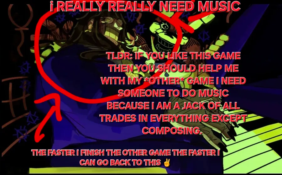 kind of looking for someone to possibly do music for a current little side project of mine in the same vain as this game💗 nothing too crazy just a handful of beats but..🐇💭