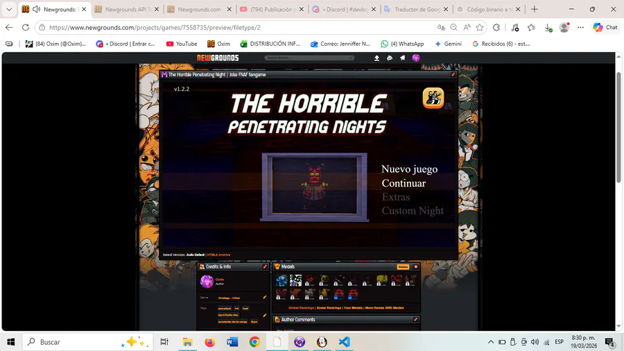 Well I finish the TEST of the awards, probably the next [mini-update] It will be released next week with the HTML for The Horrible Penetrating Nights, which will be released on April 1st on the NewGrounds website.
