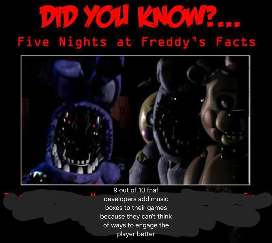 I had a dream last night where I was playing fnaf 1 irl but the classic animatronics were fused with the toys and it looked like this