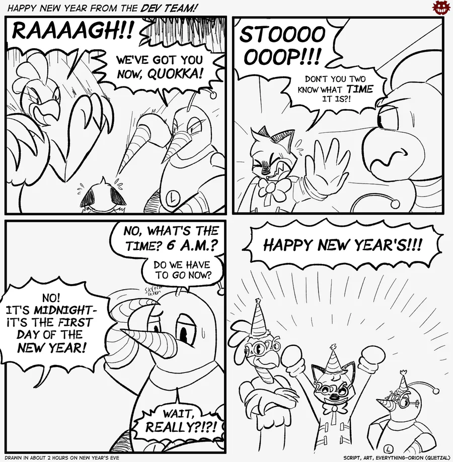 Have a small New Year's comic made by the one and only Quetzal/Orion!