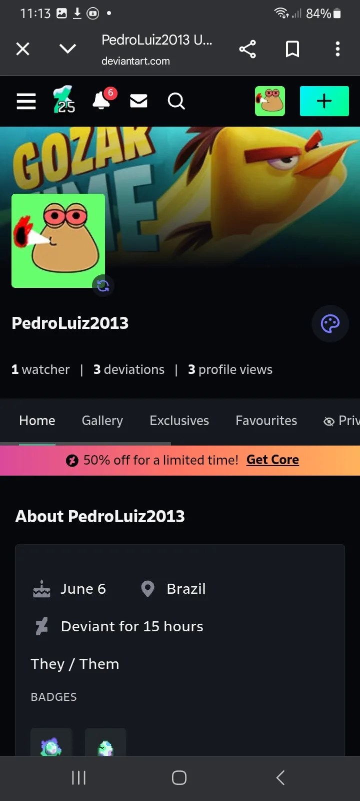 Criei uma conta no DevianArt