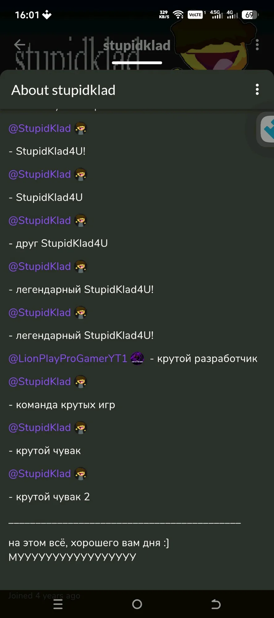 Такое ощущение что он в рофл пинганул меня в описании своего профиля