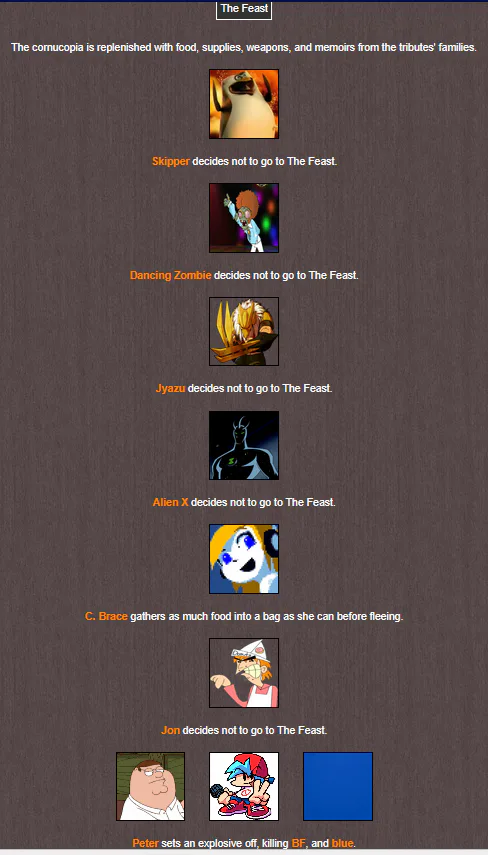 Wackiest fucking scenario made with BrantSteele's Hunger Games Simulator no. 7, pt. 1 - unusual fatalities, unlikely alliances