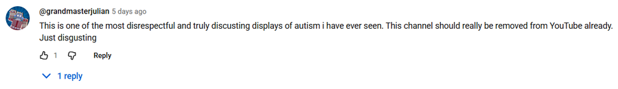 obviously it's disrespectful and doesn't represent autism very well but saying it's disgusting is truly a way to describe it