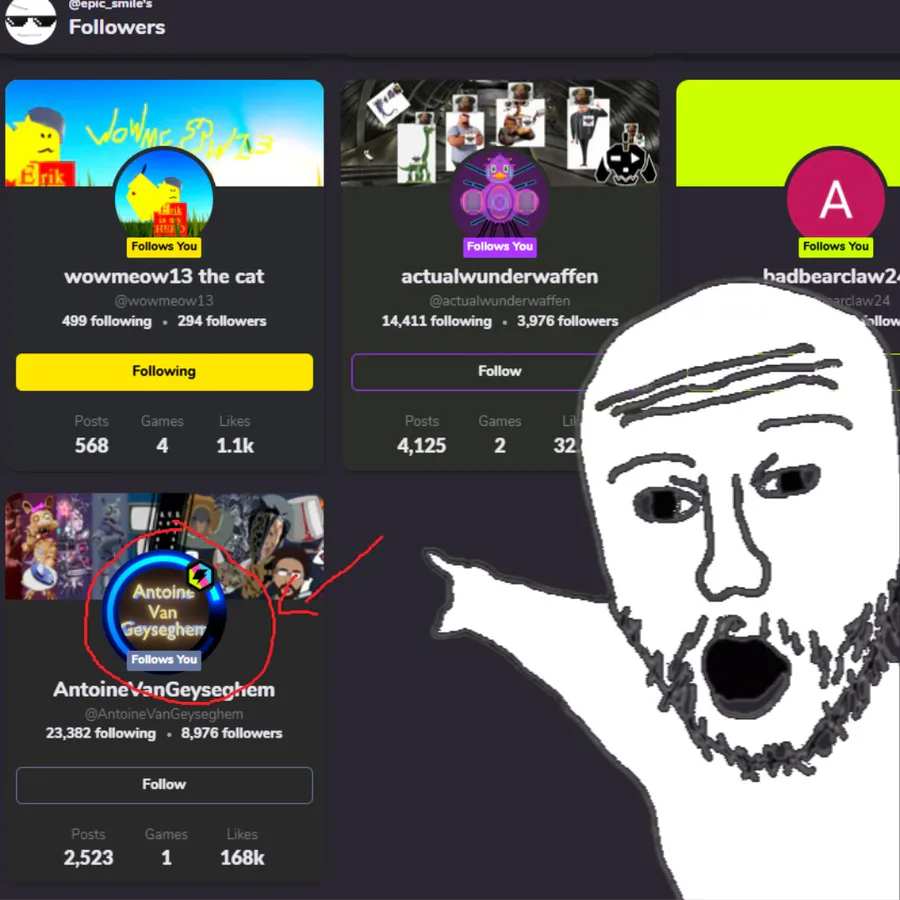 HOLY SHIT A GAMEJOLT CREATOR FOLLOWS ME???!!! @AntoineVanGeyseghem ![]()