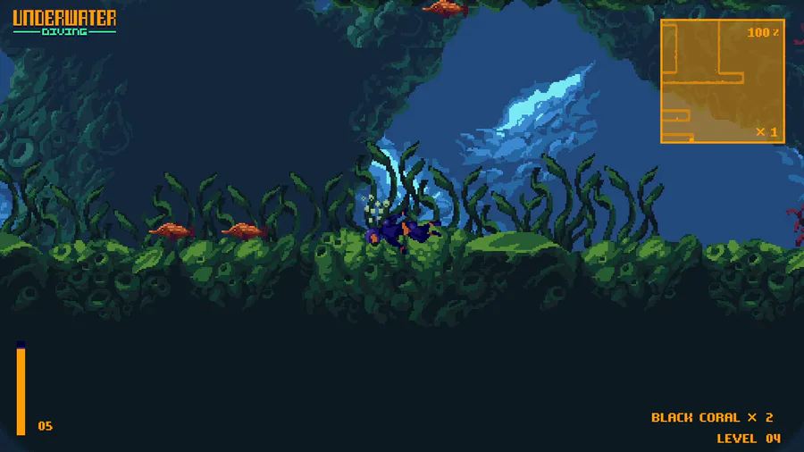 You are an underwater diver surrounded by aggressive fish and minefields