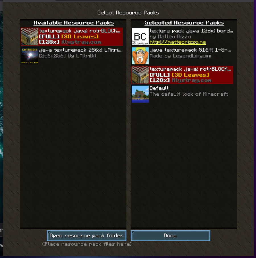 but i adedd the texture pakcs and settings on screen shot