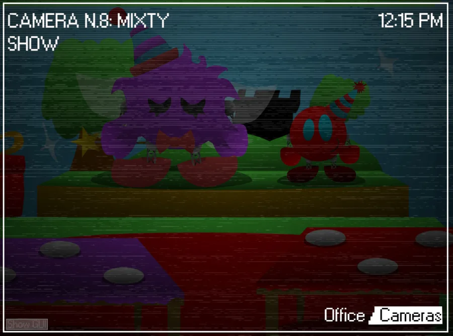 For its redesign, I added more whimsical touches, since in the lore its area consists of stories interpreted by her and Mini Reddy. She is like Jelly, slowly coming out of her room until she escapes. Once you hear her running, you will have to reset her AI through the panel. This takes a long time, so if she is in her position before leaving, you will have to activate it to avoid dying. She has her jumpscare too fortunately