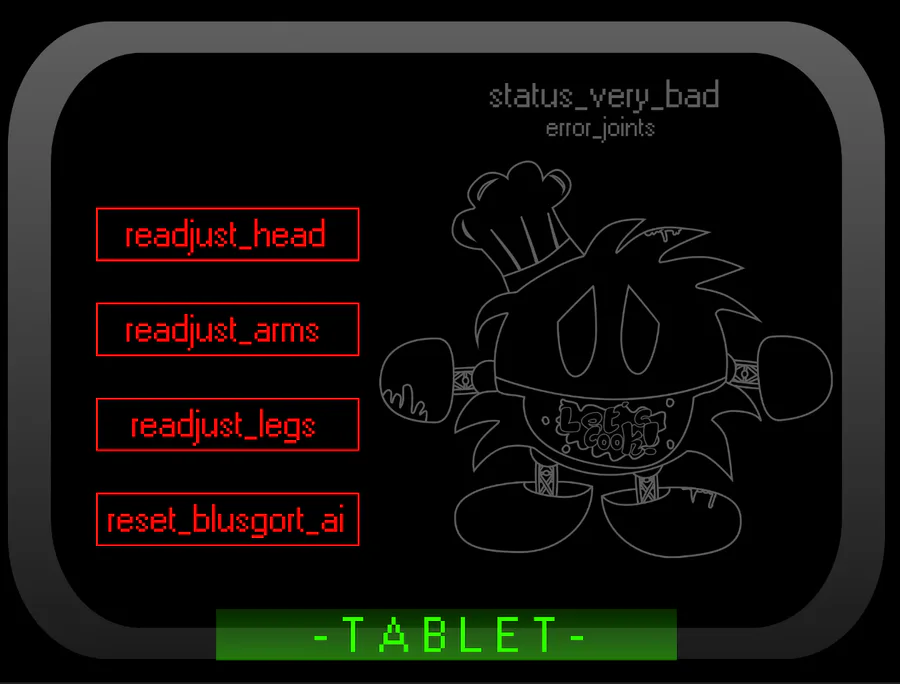 In these, you must make the state of the animatronic be in good condition to be able to finish the night. Each night will have its unique touch; in this case, it is the simplest. You must click to repair parts of the robot. This happens because the tablet is connected to the robot, and this allows you to fix things in its software, and the way to avoid the animatronic changes. In this case, you must reset its AI to make it stop bothering you.