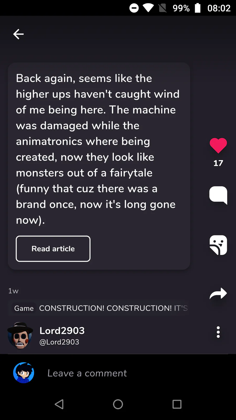 Basically, that's how I feel in the FNAF community