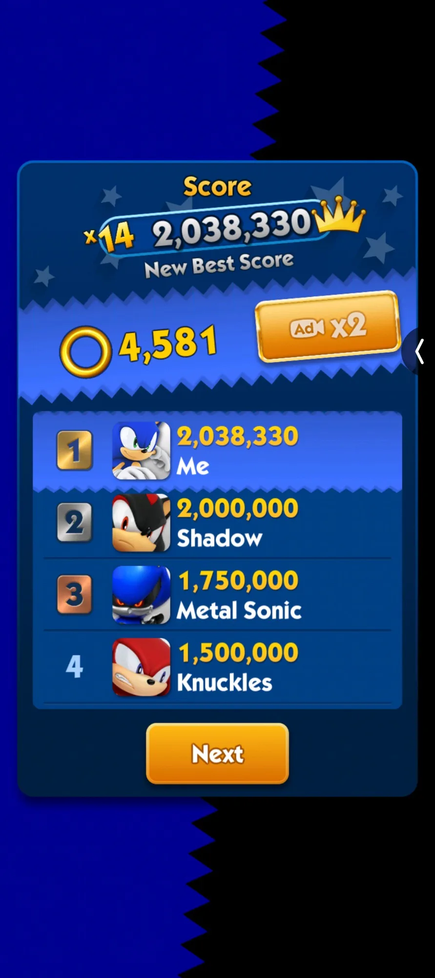 I'm Finally On The Top Leader Bored On Sonic Dash!!