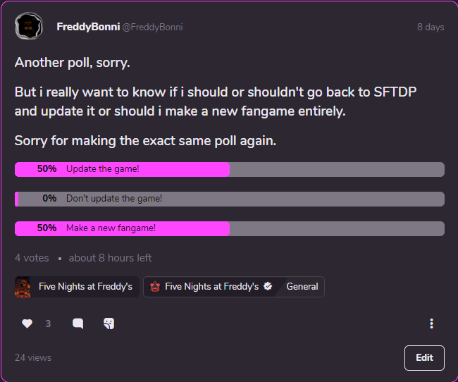Hey everyone, i just want to say that because of lack of motivation i decided to cancel the game sadly, but there will be a final update for the demo to show the look of the full game. That will be it, i just hope you all have a nice day/night.