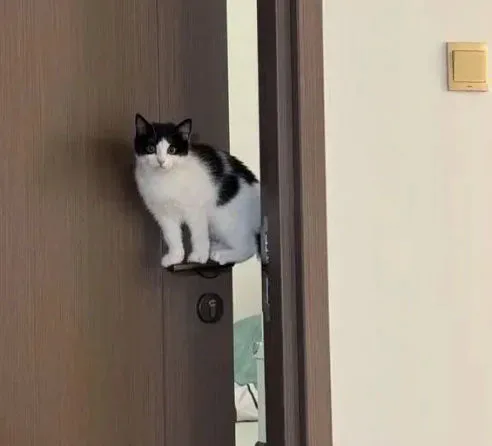 Cat sitting on the doorknob perfect slide meme