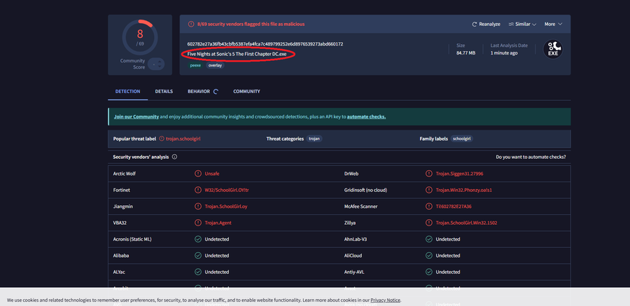 (WRONG SORRY) so every fnas dc game has a virus (including demos and older versions)