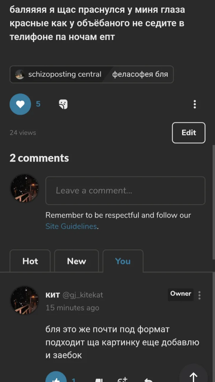 я стал случайно писать посты по формату канала который как бы по идее полурофл полушутка полупидор а я эту херню всерьез написал мораль ищите сами