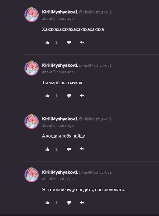 Немного шизо-тейков и "угроз", на уровне шестилетки, от кирилла