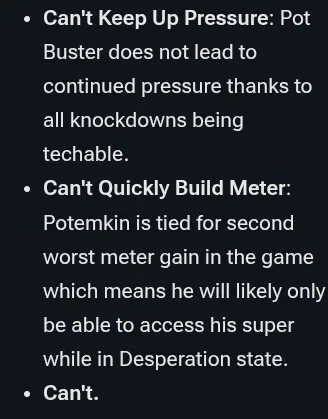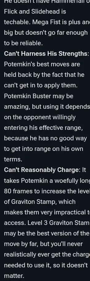 Guilty Gear has to be the only series where you can play as an old man, an emo, a christian, an ex-drug addict ninja, an ex-suicidal women, an ex-serial killer, an ex-slave, a time-travelling pirate, testament (nonbinary), a mecha, a samurai and older man