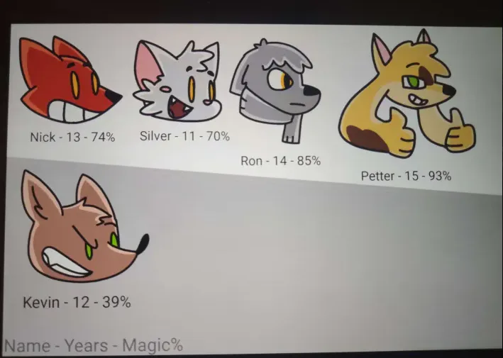 Unfortunally this might be the only thing I saved that has Kevin in it, but he was the closest thing to the design of the 2022 prototype (image below), except with a different fur colour, fangs and green eyes. (I'd say that he also had a bit more animalistic porportions).